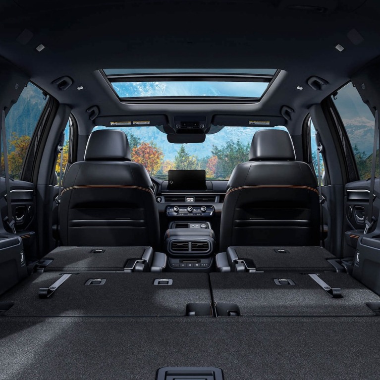 The Pilot is equipped with a V-6 engine capable of towing up to 5,000 pounds.4 That’s enough muscle to pull a 24-foot camper, a trailer with two side-by-sides, or a 22-foot boat.