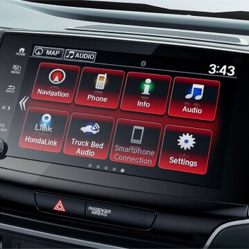 The Ridgeline is packed with technology inside and out. From an available Honda Satellite-Linked Navigation Systemâ„¢3 to a 9-inch Display Audio touch-screen, the latest tech is always at your fingertips.