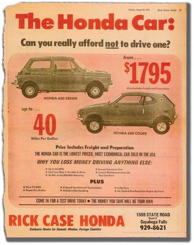 In Southern California, Honda N600 Specialist Tim Mings has made a living exclusively by fixing and restoring old Honda N600s and Z600s – the first models ever brought stateside for the brand. As the predecessor of the 1973 Honda Civic, the N600 began life as the lowest-priced, most economical car in the USA, with a starting MSRP of $1,795 (including prep and freight) and up to 40 highway miles per gallon. The car had an aluminum engine which could achieve 9,000 RPM and reach speeds of 81 miles per hour. A simple yet skillfully designed vehicle, the N600 embodied characteristics shared with today’s Hondas, and helped pave the way for the brand’s legendary reputation for quality and reliability.
