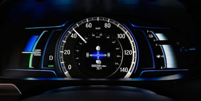 From the outside, the 2017 Honda Accord Hybrid is technologically sophisticated and uniquely stylish. Bold, angular lines paired with a selection of beautifully designed wheels create a profile that’s immediately eye catching and memorable. The HondaSensing suite of safety features, including Lane Keeping Assist System (LKAS), Adaptive Cruise Control (ACC), Collision Mitigation Braking System (CMBS) and Road Departure Mitigation (RDM) is standard on all Accord Hybrid trim levels.