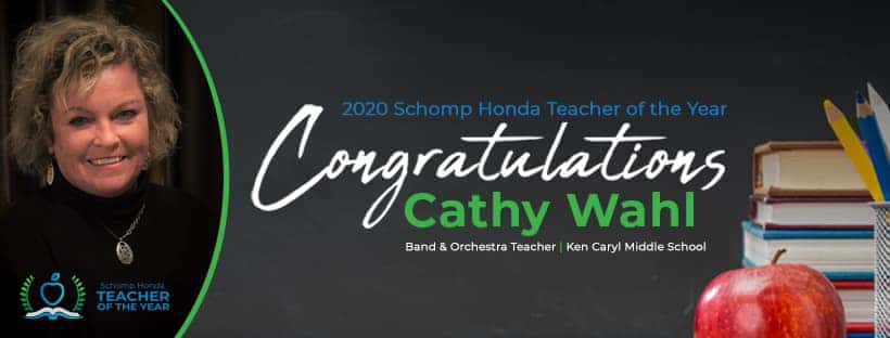 Cathy Wahl, Band and Orchestra Director at Ken Caryl Middle School, has won the “Schomp Honda 2020 Teacher of the Year Award.” She came out on top of a field of five finalists with a total of 20,589 votes.